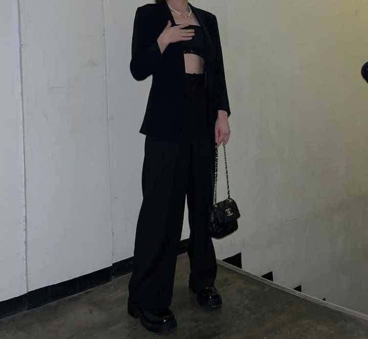 8. Siapa bilang kalau one set cocoknya cuma buat kerja? Dalaman model kemben bisa membuat one set hitam jadi lebih menarik dan pas banget buat party