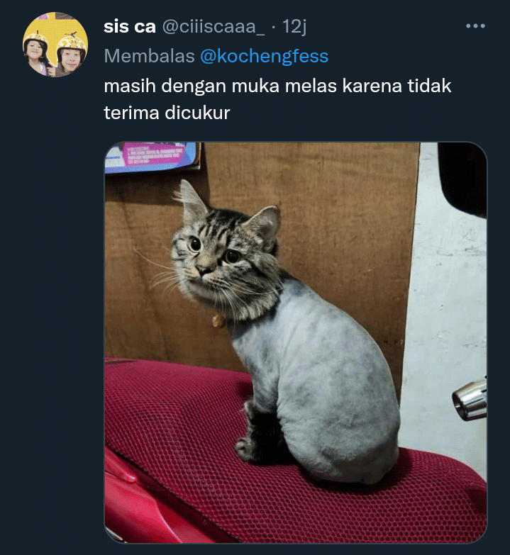 7. Majikan meng ini membagikan dalam cuitannya, kalau meng yang habis cut lion juga bisa stres, loh