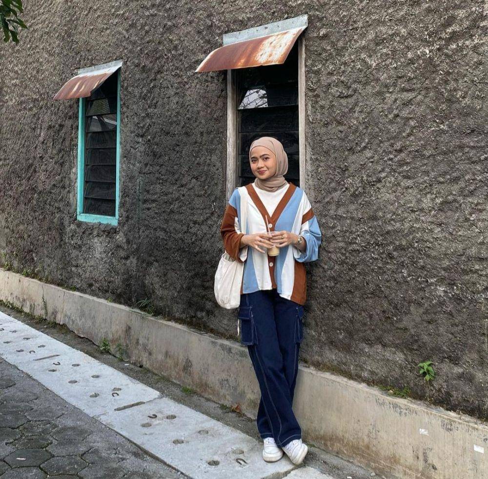 9 OOTD Hijab Casual Cardigan Rajut ala Selebgram Maryam Nurul