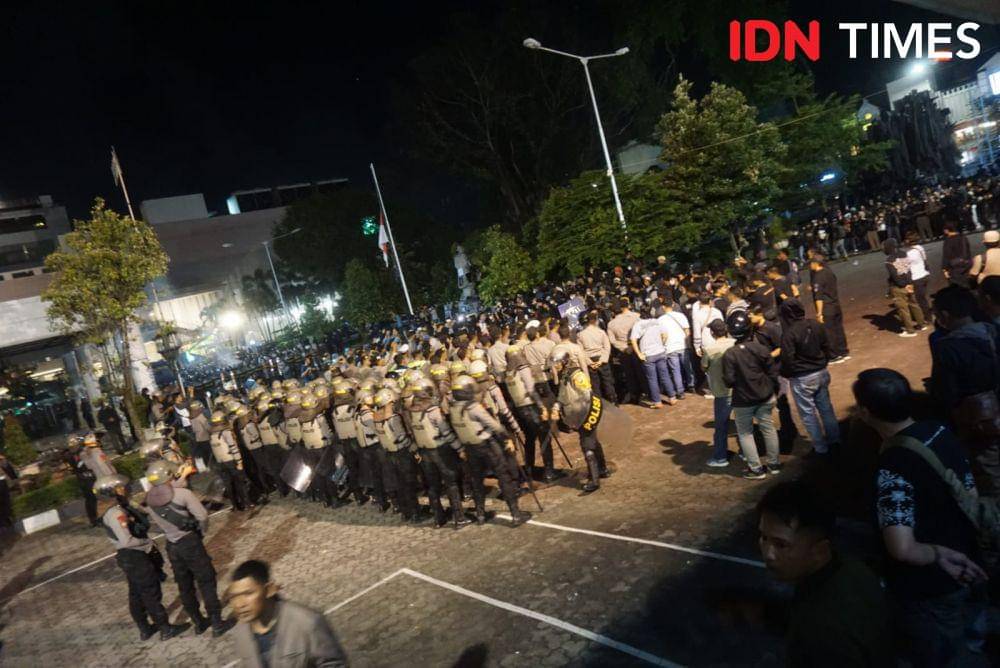 Kala itu, puluhan personel Sabhara yang sudah bersiaga diminta duduk dan meletakkan tamengnya. Beberapa kali situasi sedikit memanas ketika ada lemparan botol air mineral dan lampu Kantor DPRD mati. Beberapa peserta aksi kemudian meminta massa untuk tetap tenang dan menjaga kondusivitas.
