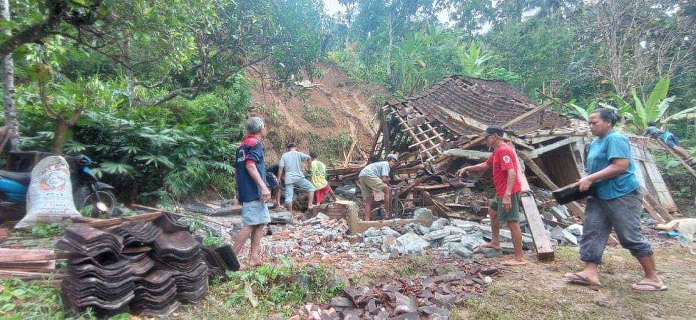 "Jadi ada yang rumahnya rata dengan tanah dan ada pula rumahnya miring akibat diterjang material longsoran tanah," ucapnya.